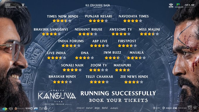 Critics have offered varied responses to Kanguva, with some praising Suriya's dedication and the film's action sequences, while others felt let down by the screenplay and storytelling. The movie’s focus on visual grandeur and high-octane fight scenes was appreciated, but some critics pointed out that the storyline and character development felt weak, detracting from the immersive experience that the movie’s massive budget promised. Fans on social media have echoed similar sentiments, praising the visuals and Suriya’s performance while expressing that the narrative could have been stronger
